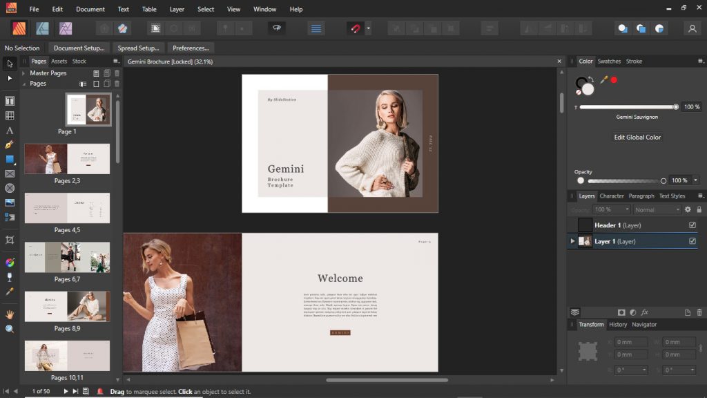 Với các yếu tố cần thiết như trang chính, trải trang đối diện, lưới, bảng, kiểu chữ nâng cao, dòng văn bản, bản in chuyên nghiệp đầy đủ và các tính năng tuyệt vời khác, Affinity Publisher có mọi thứ bạn cần để tạo bố cục hoàn hảo – bất kể dự án của bạn.